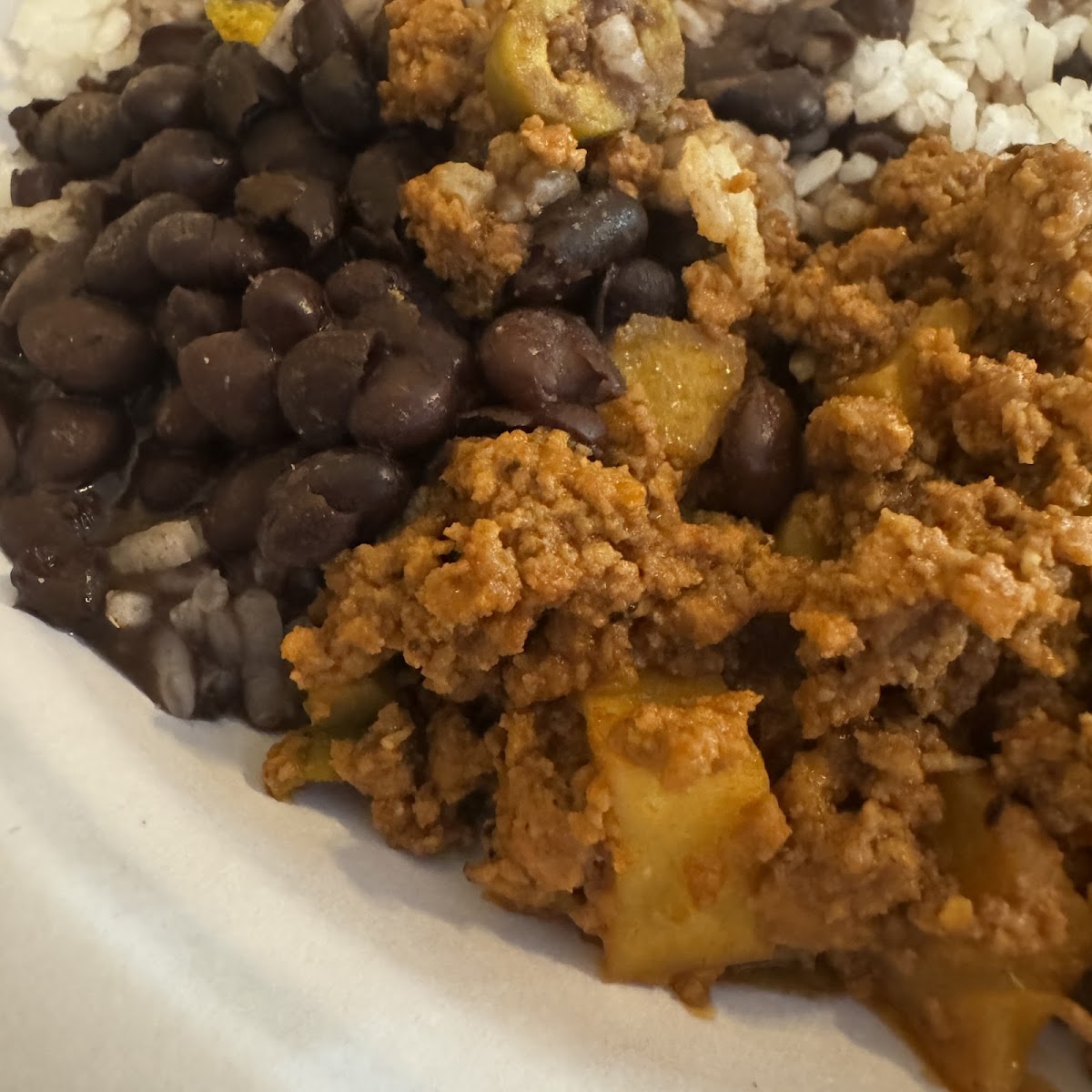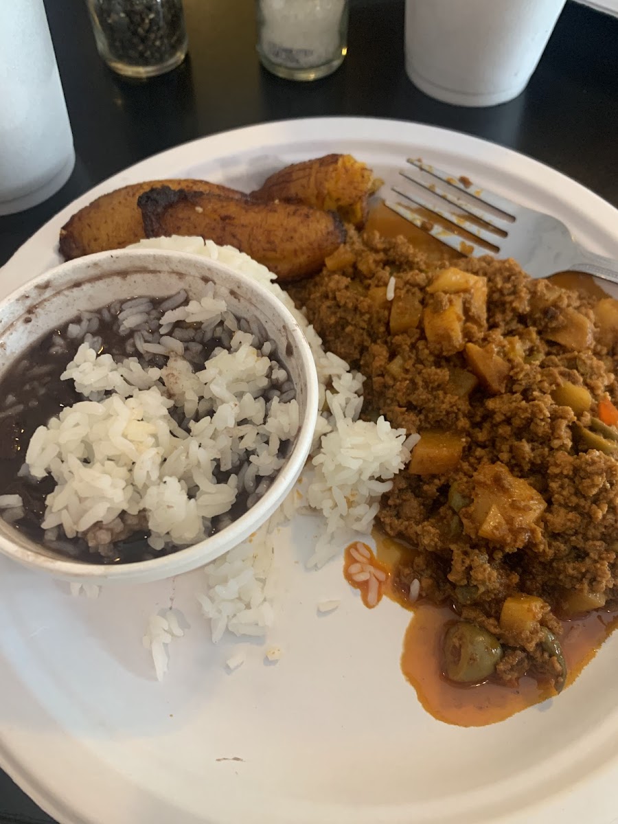 Picadillo (think Cuban sloppy Joe) was very good. I am not a fan of green olives, but this dish is very tasty. Black beans and rice were good. I added plantains and they were great. My brother got the steak (Palomilla) and it tasted great, but just a little chewy.
